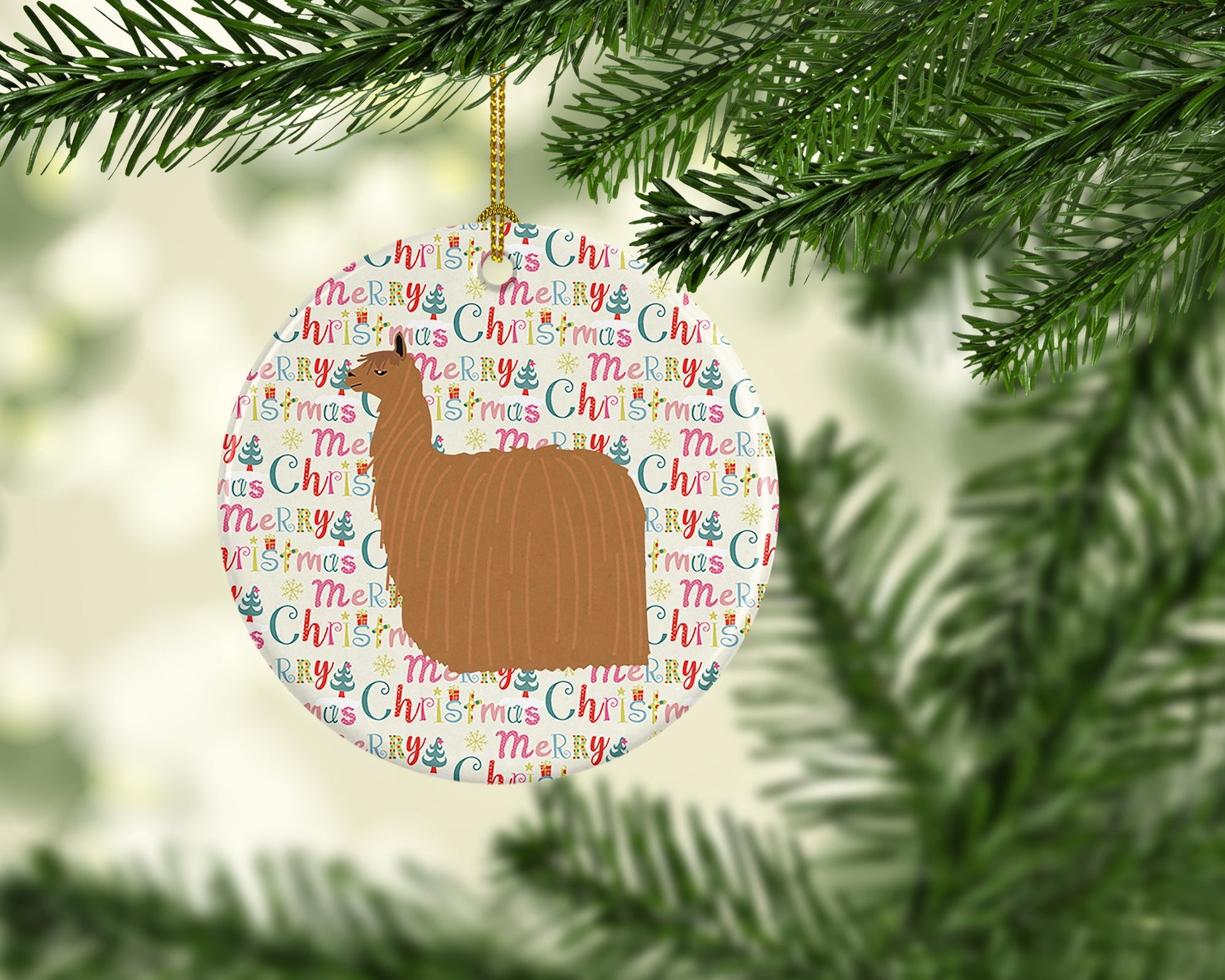 Ceramic Ornament featuring breed specific Alpaca Suri artwork. Celebrate Christmas with this Christmas Ornament. This Ceramic Ornament is from Caroline's Treasures collection Merry Christmas. Add a touch of personalized charm to your Christmas tree this holiday season with our Ceramic Ornament. Measuring 2.8125 inches in diameter, this round porcelain ornament beautifully reflects your festive lights, enhancing your holiday decor. The gloss surface sets off the vibrant, full-color artwork contributed by one of our talented artists, bringing a pop of color and joy to your tree. This Ceramic Ornament doesn't stop at being merely decorative. The white back is designed for personalization. Write a heartfelt message, mark a special year, or inscribe a date with a paint pen or a permanent marker to create a treasured memento. Please ensure you allow any personalization to dry thoroughly before handling to maintain the pristine finish. Included with the ornament is a delicate gold cord for easy hanging. Made in the USA, this Ceramic Ornament makes an exceptional gift for a pet sitter, teacher, family member, or anyone you wish to share a little Christmas magic with. With its blend of style, charm, and personal touch, it's a meaningful addition to any Christmas tree. This Ornament is from Caroline's Treasures Farm Animals category of products.