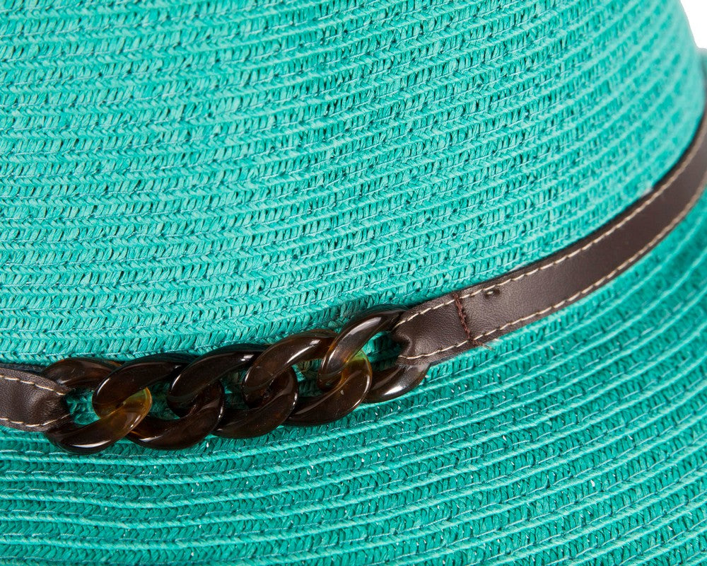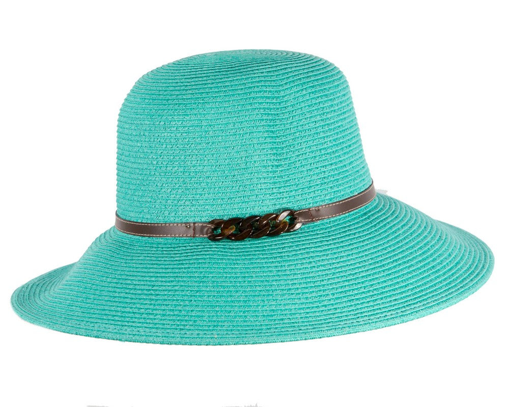 The sleek brown band with chain detail adds a touch of elegance, making it versatile enough for both casual and dressy outfits. Lightweight and comfortable, this hat is ideal for beach days, garden parties, or simply adding a pop of color to your everyday wardrobe.