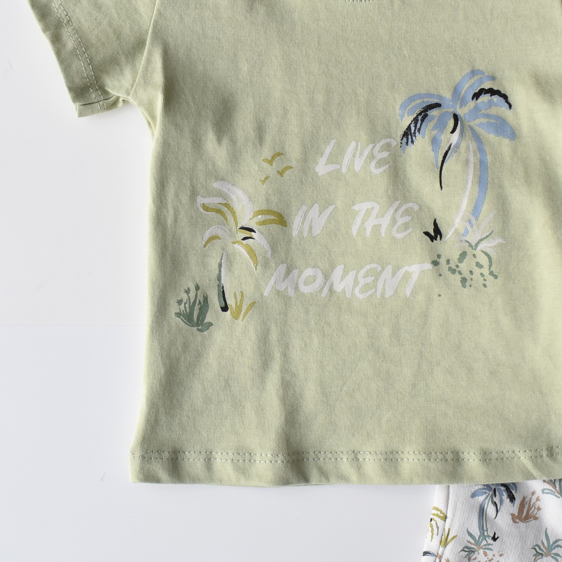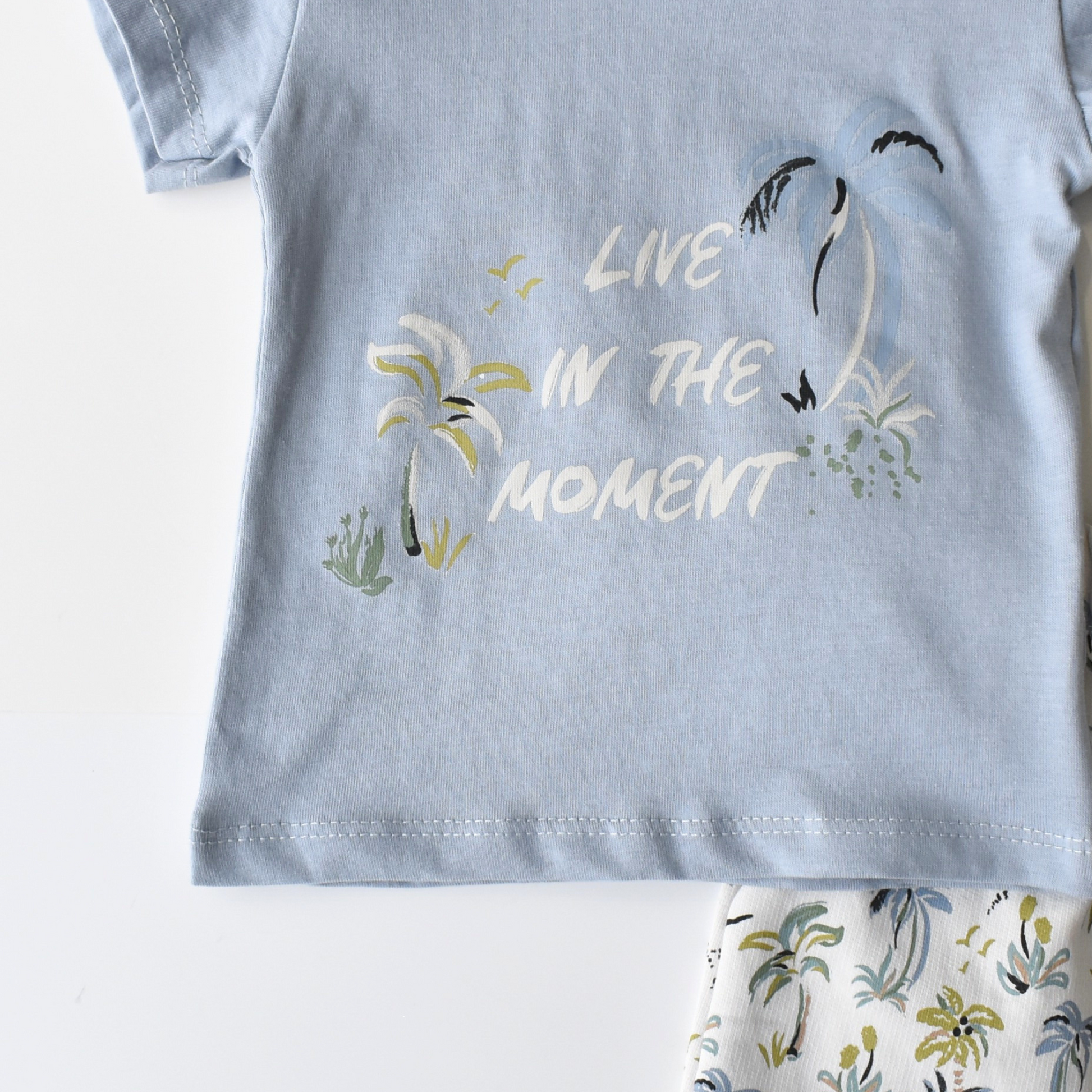 This adorable baby boy set includes a soft, comfortable 100% cotton t-shirt and matching shorts, perfect for warm days. The t-shirt features a charming, beach style pattern, and the shorts are designed for easy movement, allowing your little one to explore with ease.