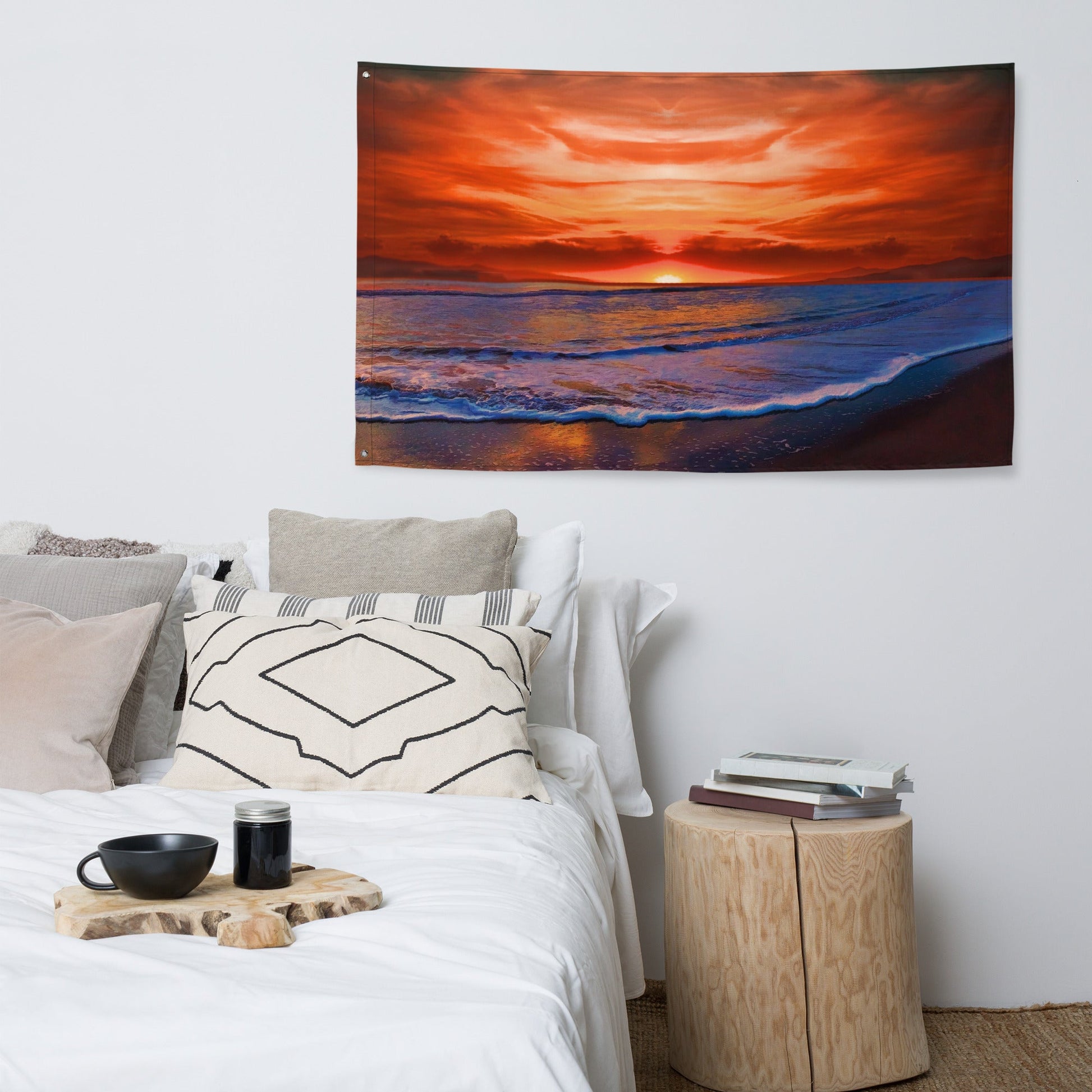 This versatile piece can be used as a flag, tapestry, or wall hanging, allowing you to adorn your space in various creative ways. Whether you choose to display it proudly as a flag, use it as an eye-catching tapestry, or elegantly hang it on your wall, this low-maintenance interior decor will undoubtedly bring a touch of beauty to any room.