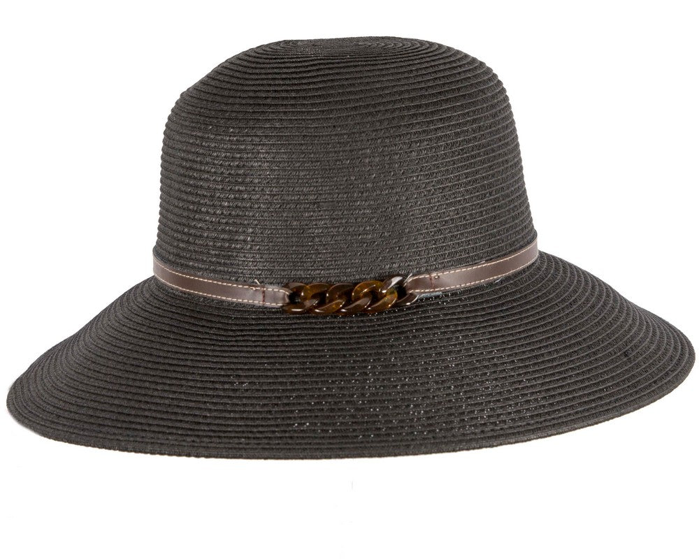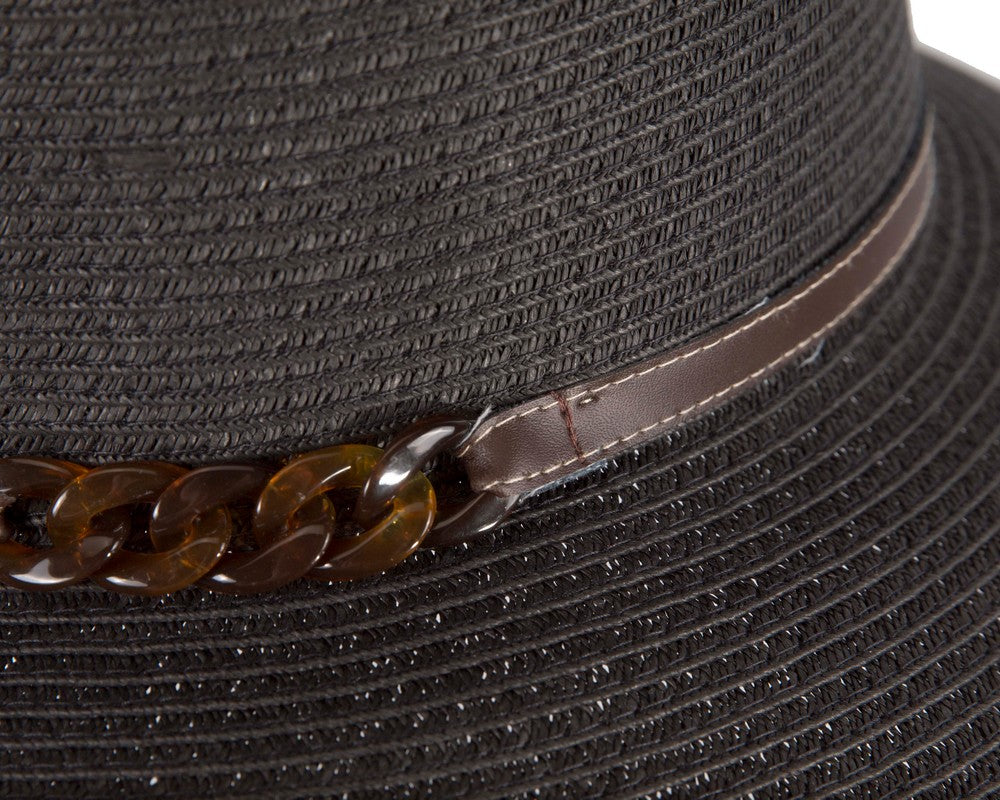 The sleek brown band with chain detail adds a touch of elegance, making it versatile enough for both casual and dressy outfits. Lightweight and comfortable, this hat is ideal for beach days, garden parties, or simply adding a pop of color to your everyday wardrobe.
