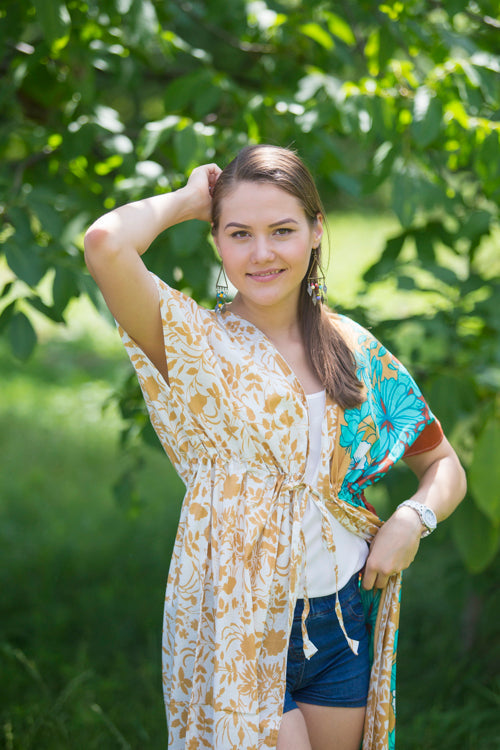 Cream Peach Beach Days Style Caftan in Falling Leaves