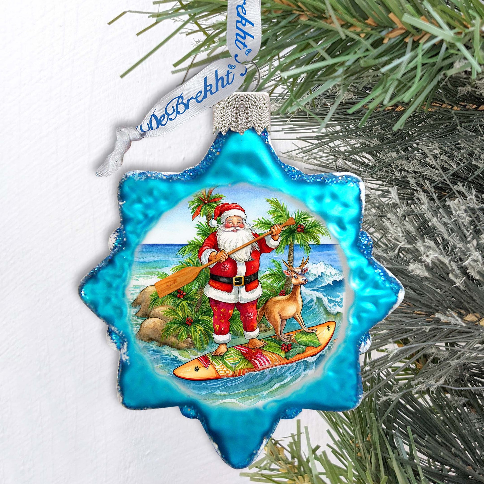 Holiday Coastal Ornament - Santa's Surf Keepsake Glass Ornaments by G. Debrekht - Christmas Décor - 777417