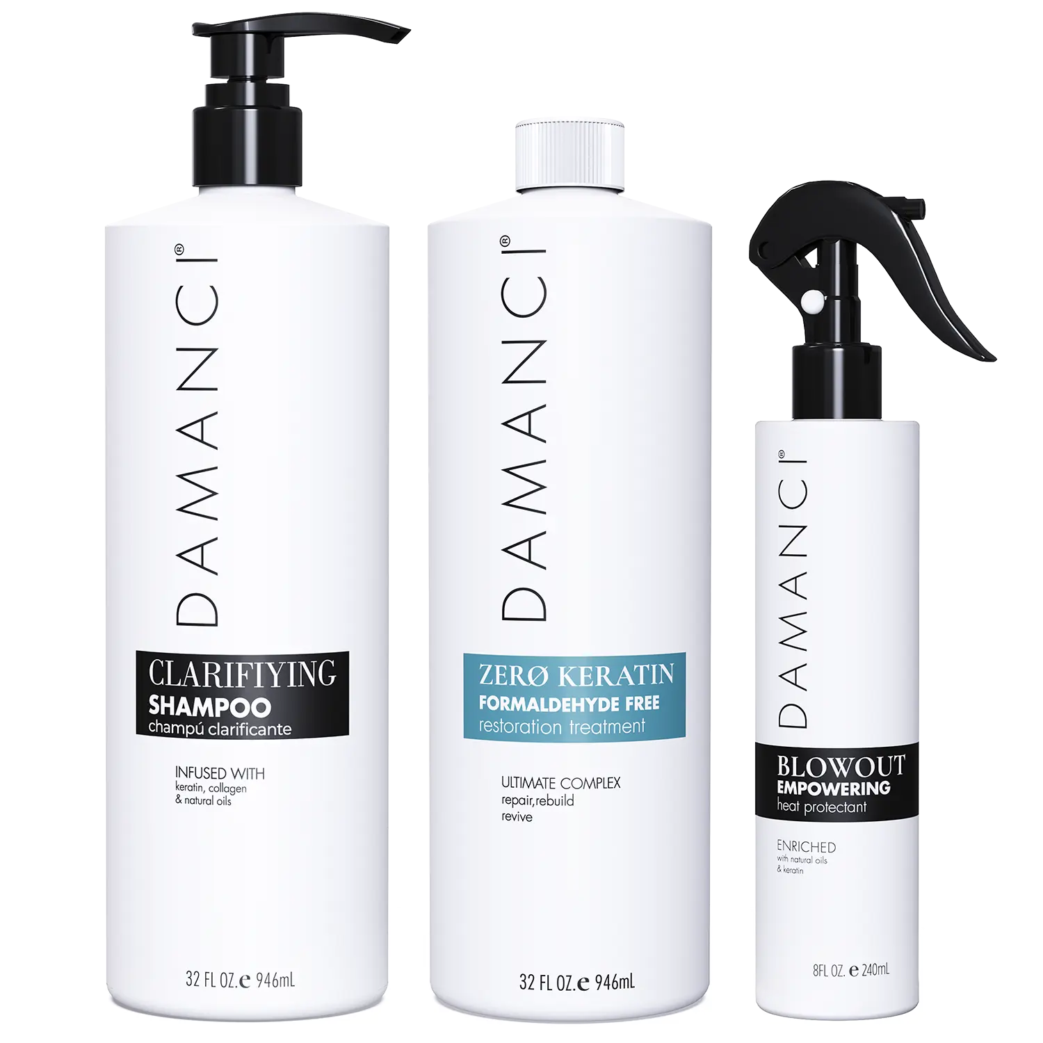 Clarifying Shampoo 32 oz + Zero Keratin Treatment 32 oz + Blowout Spray 8 oz