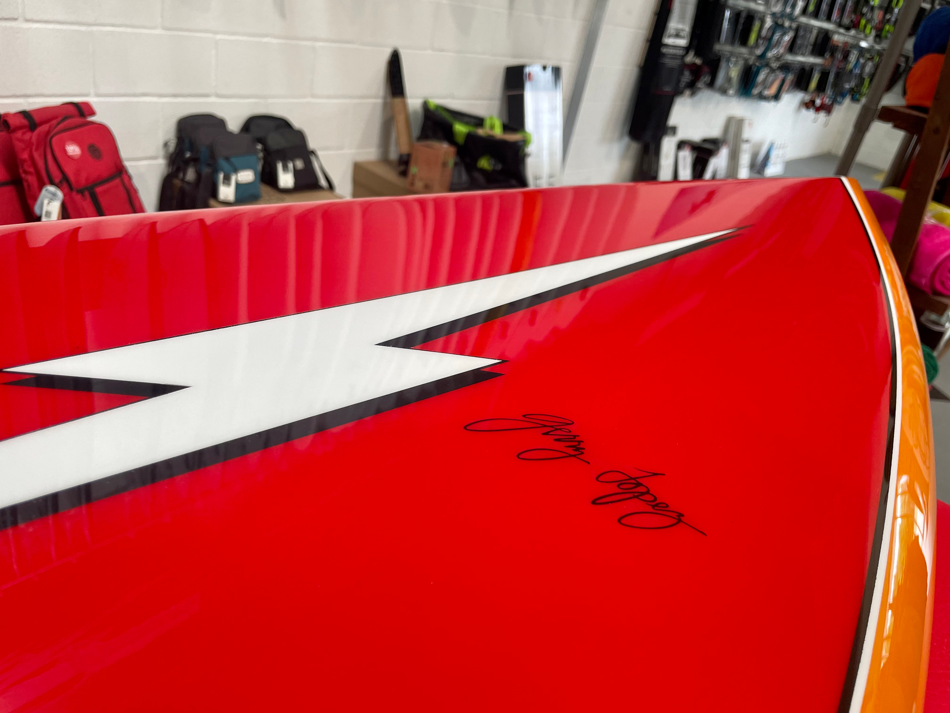 ** Todas as pranchas Lightning Bolt podem ser personalizadas, desde cores, design, pinlines, dedicatória, etc.