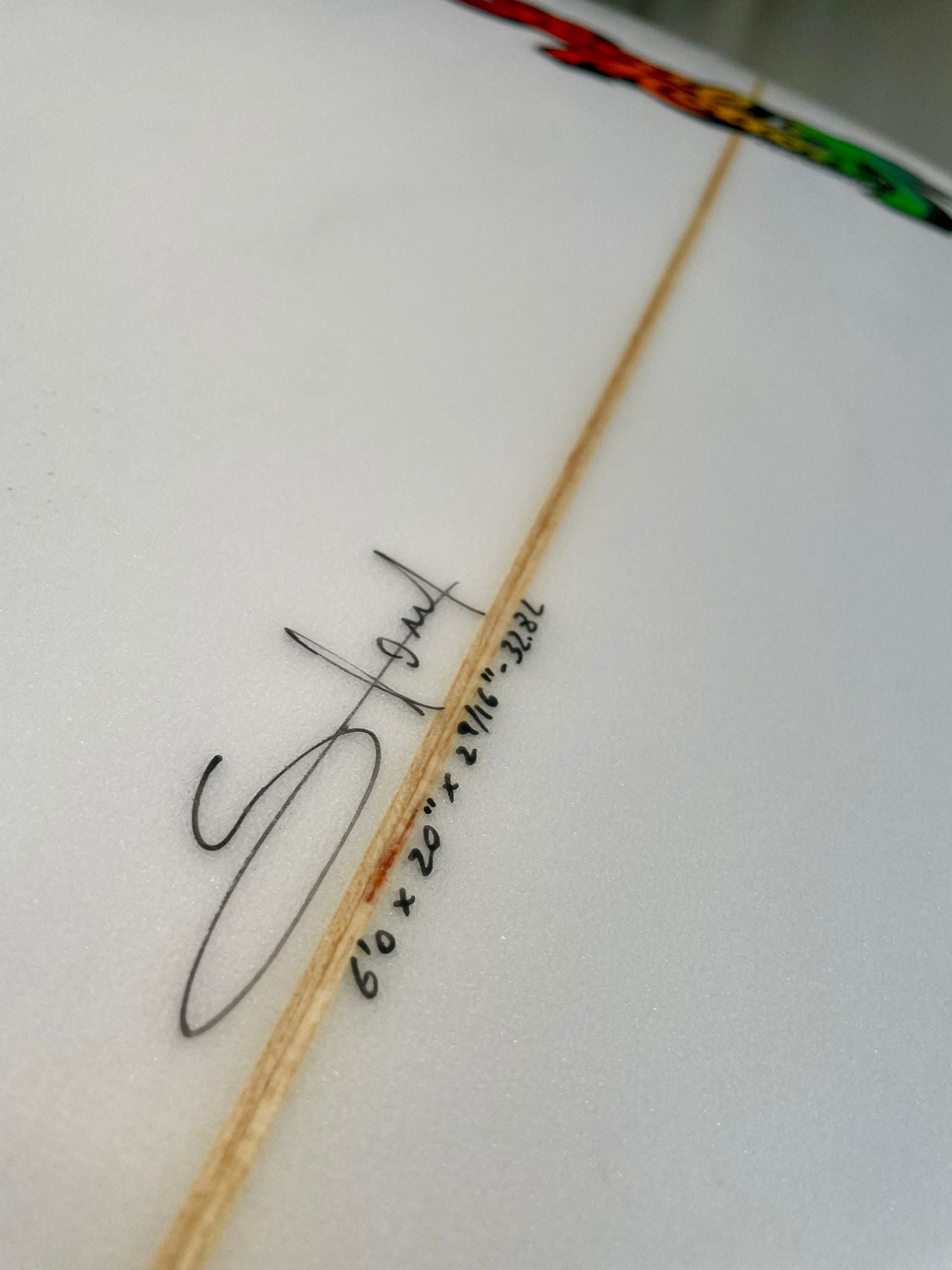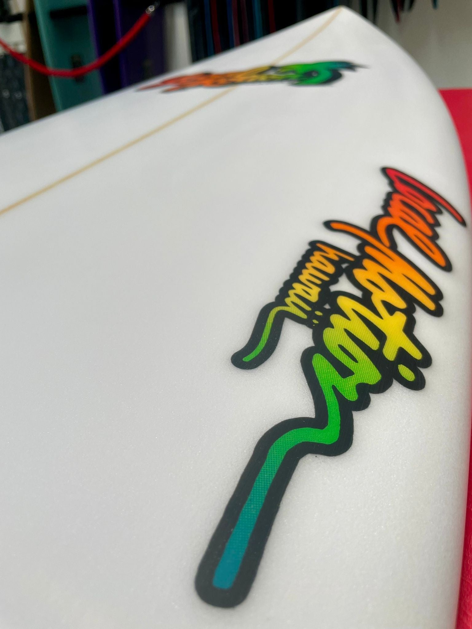 Pranchas 5'8 até 6'4 - laminação standard com 2x 4oz. deck e 4oz. bottom. Pranchas 6'5 para cima - laminação standard com 6oz. + 4oz. deck e 4 oz. bottom.