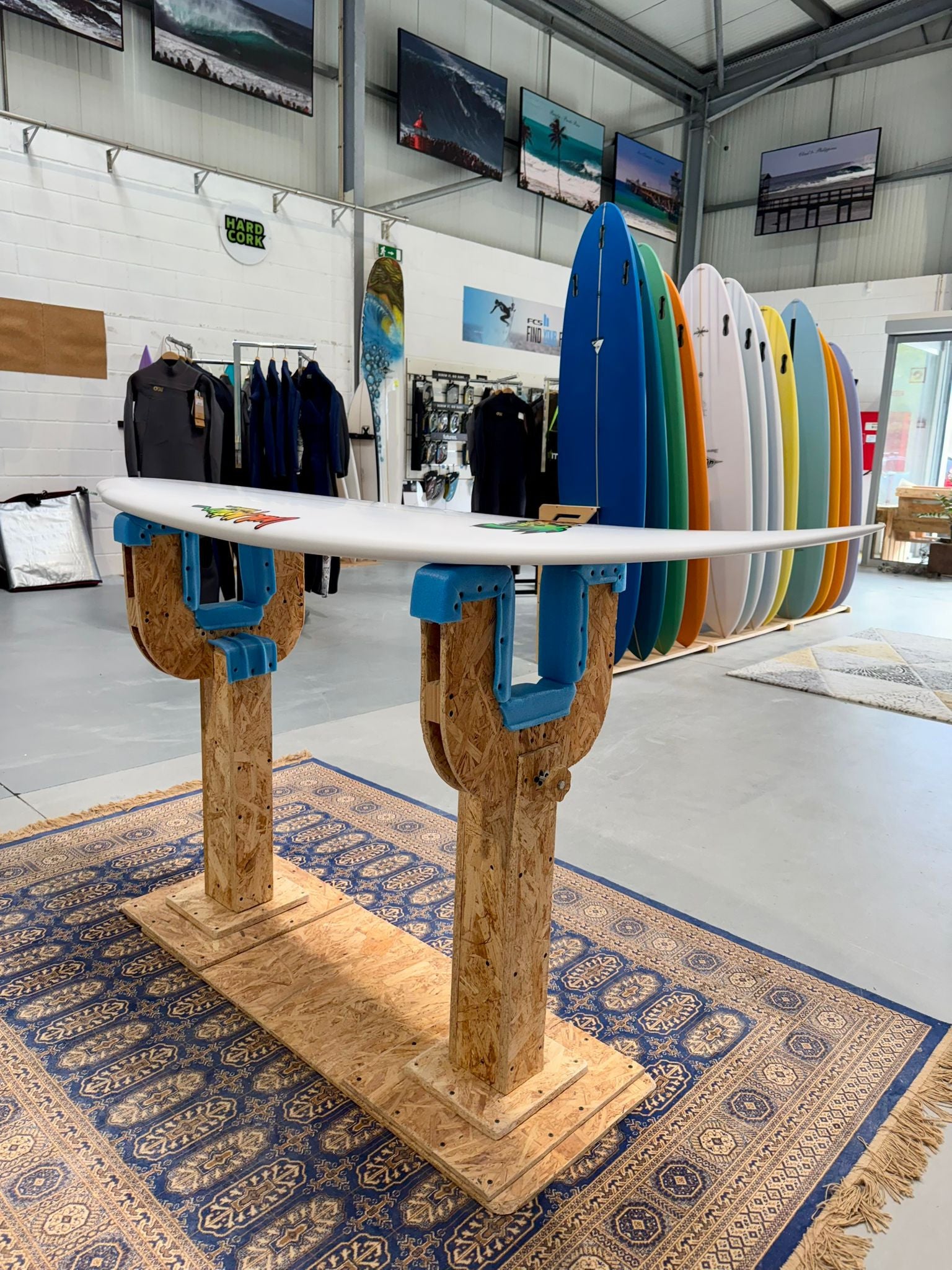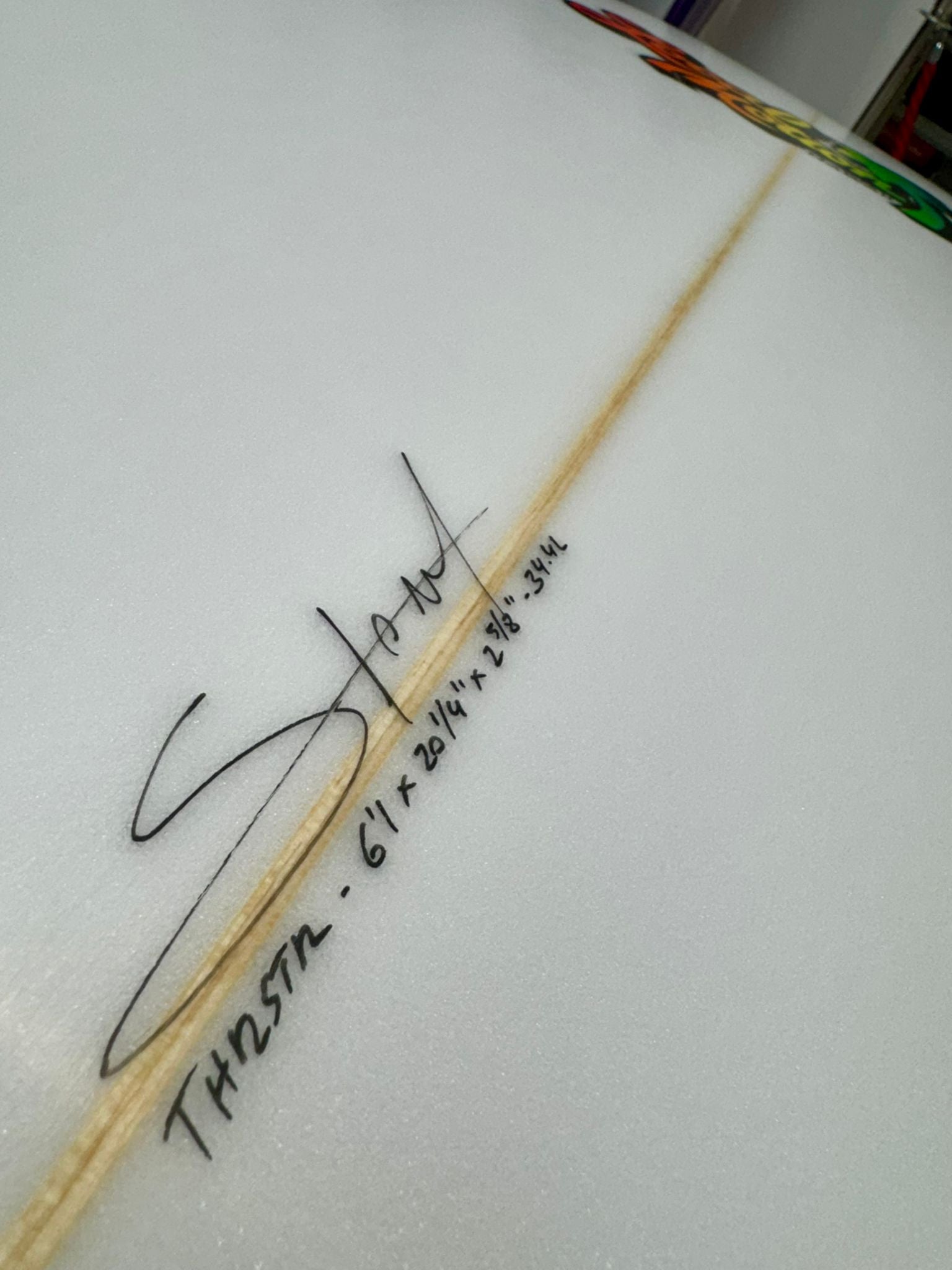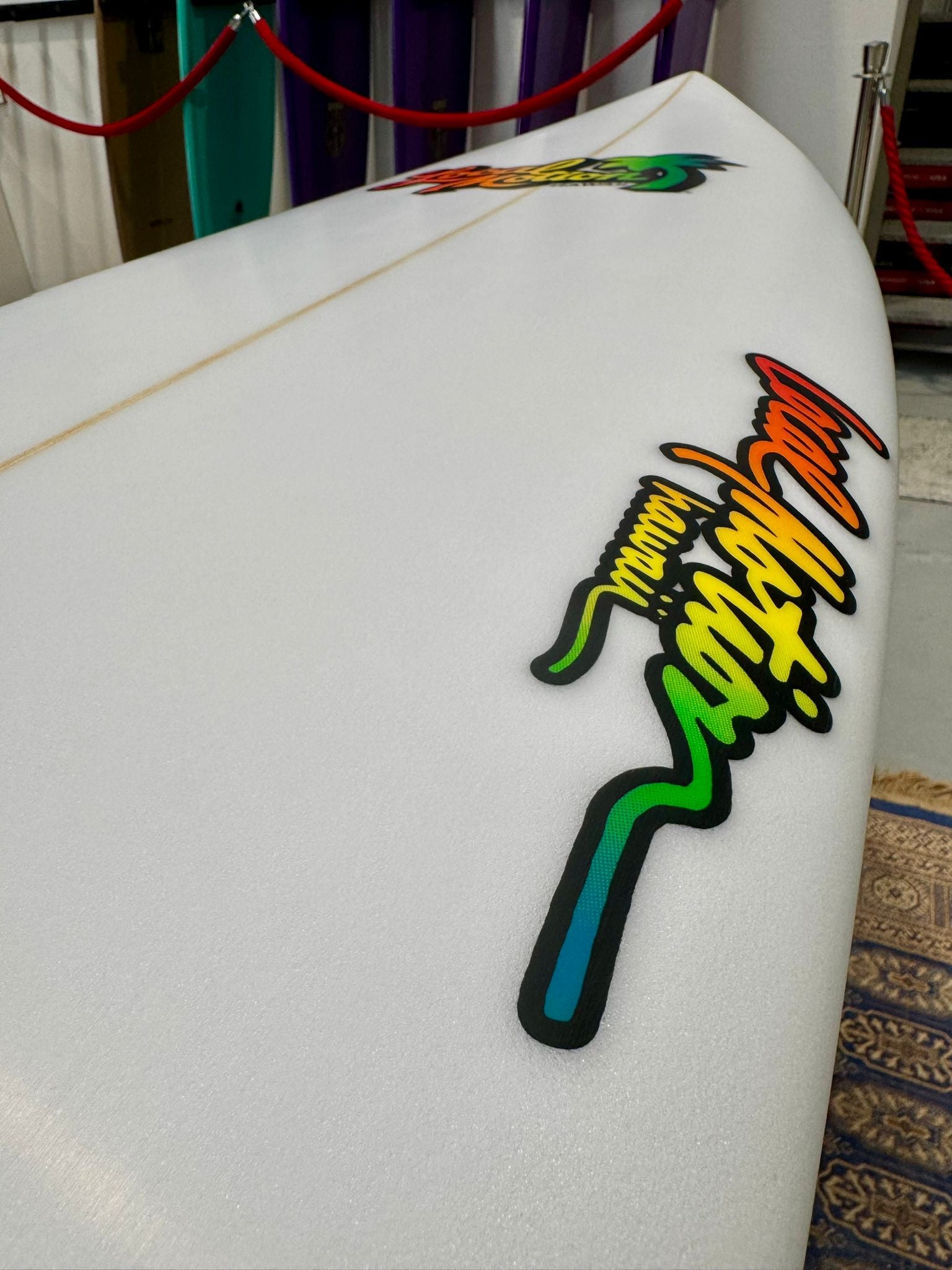 Pranchas 5'8 até 6'4 - laminação standard com 2x 4oz. deck e 4oz. bottom. Pranchas 6'5 para cima - laminação standard com 6oz. + 4oz. deck e 4 oz. bottom.
