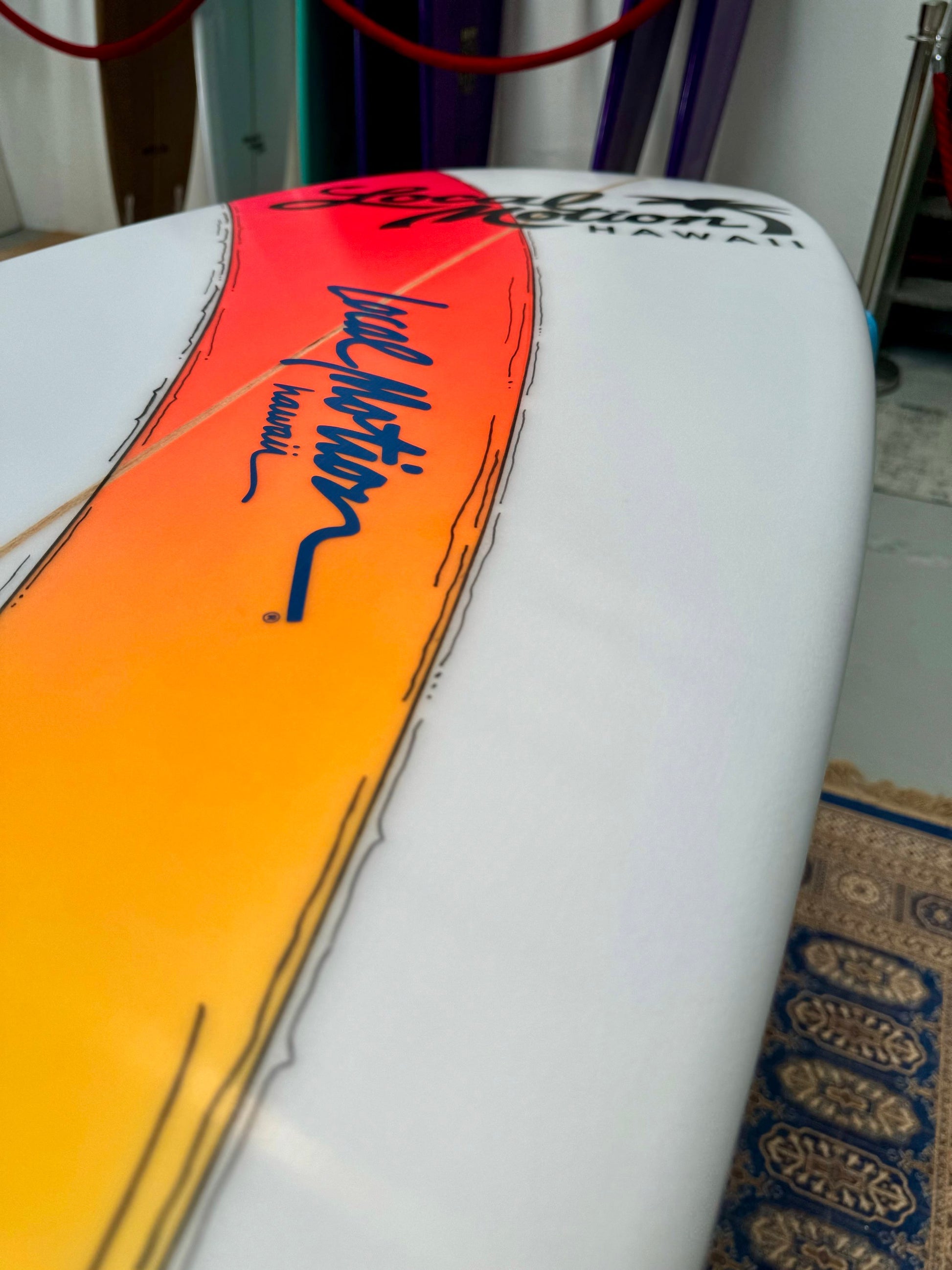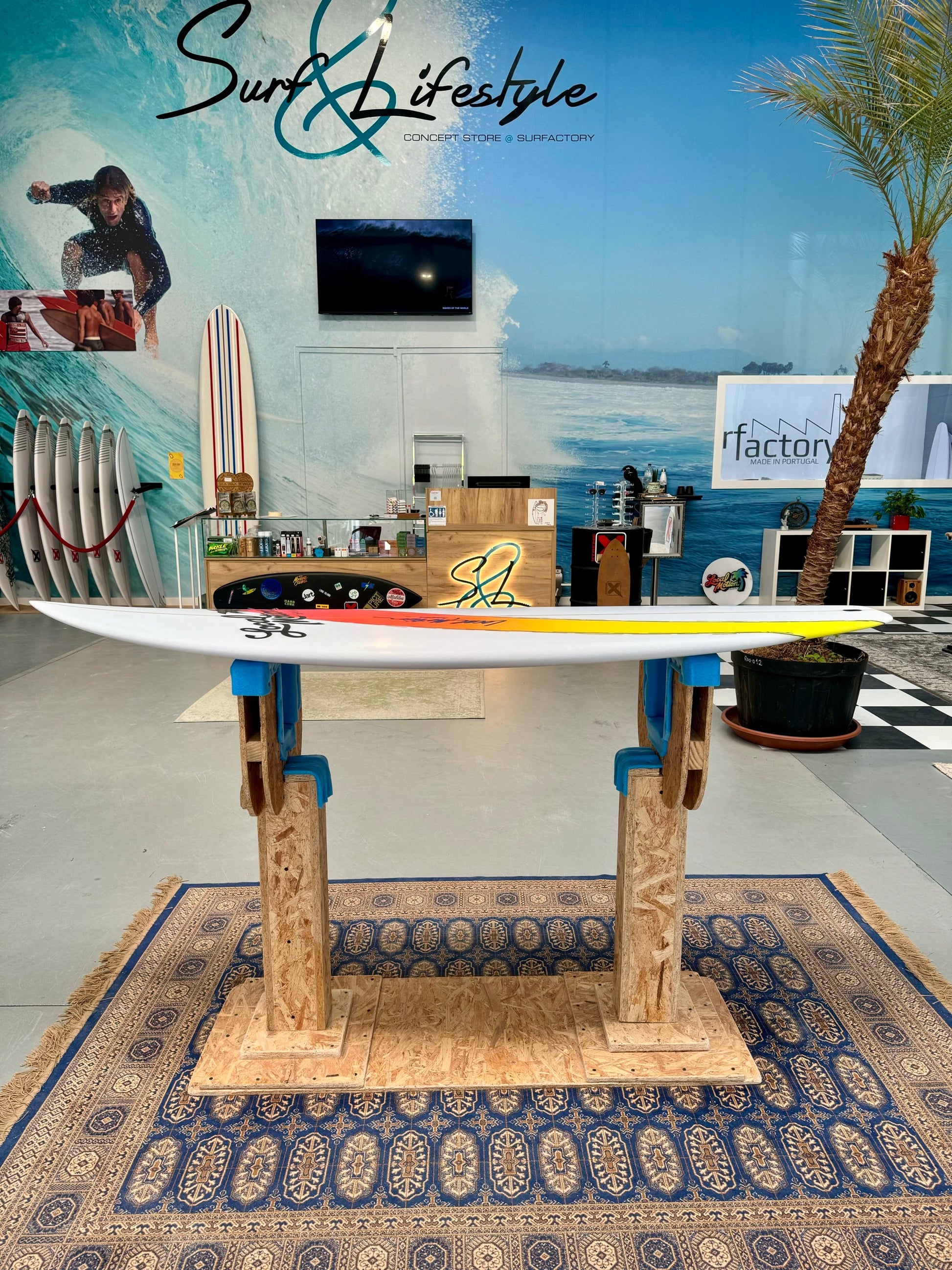 Pranchas 5'8 até 6'4 - laminação standard com 2x 4oz. deck e 4oz. bottom. Pranchas 6'5 para cima - laminação standard com 6oz. + 4oz. deck e 4 oz. bottom.