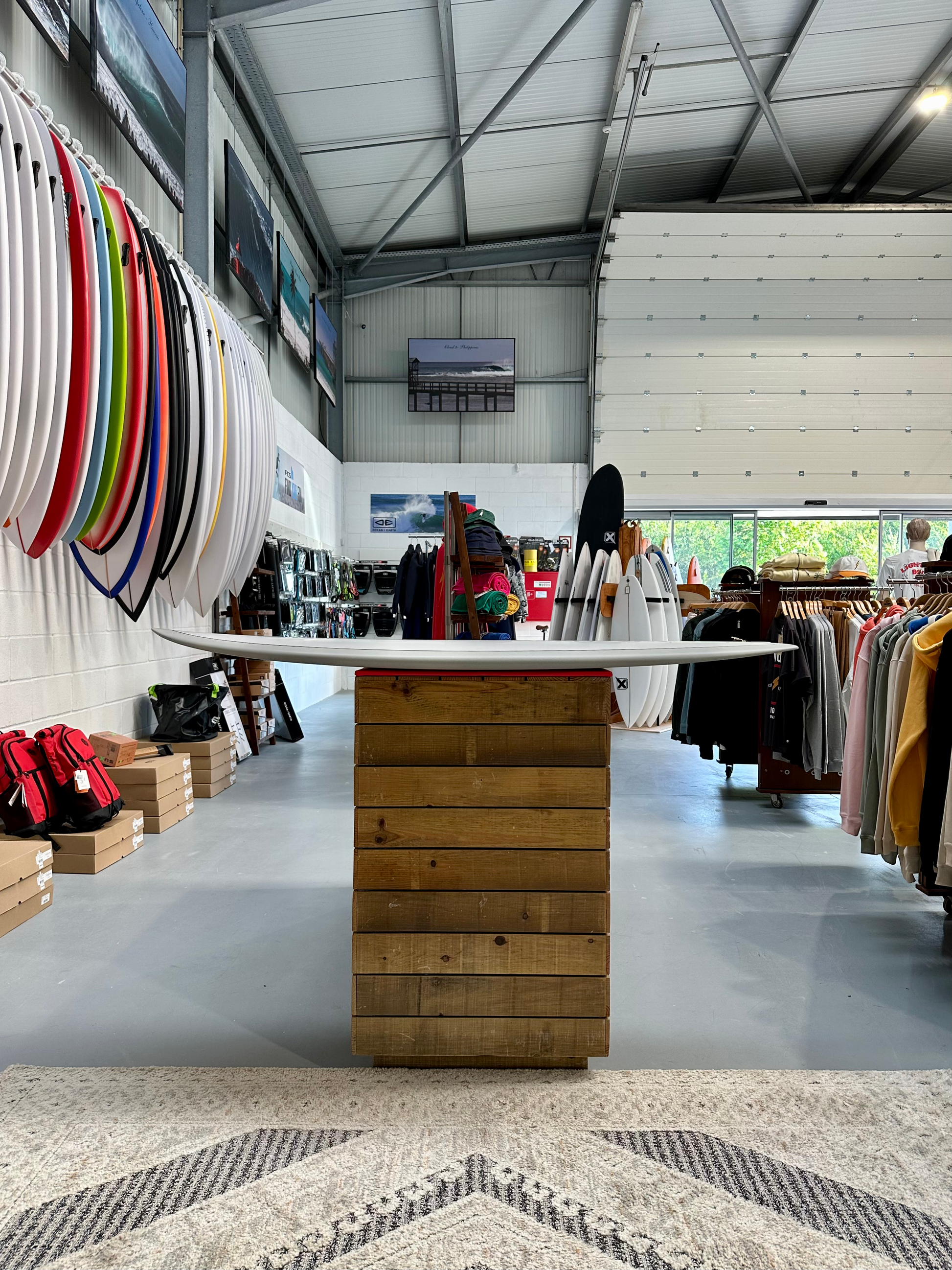 V ao longo de toda a prancha com duplo concave acentuado na zona das quilhas. O duplo facilita as manobras ao mesmo tempo que o V permite transições rápidas de rail-to-rail.