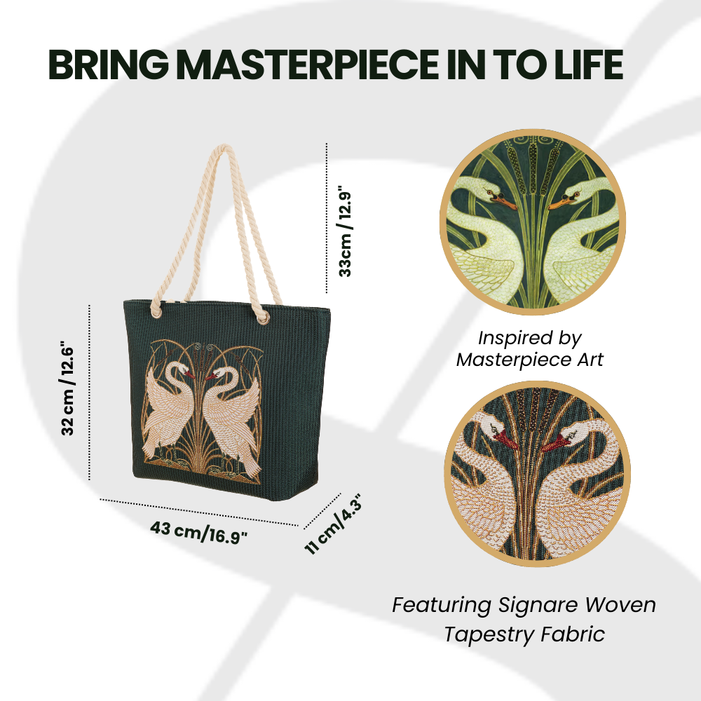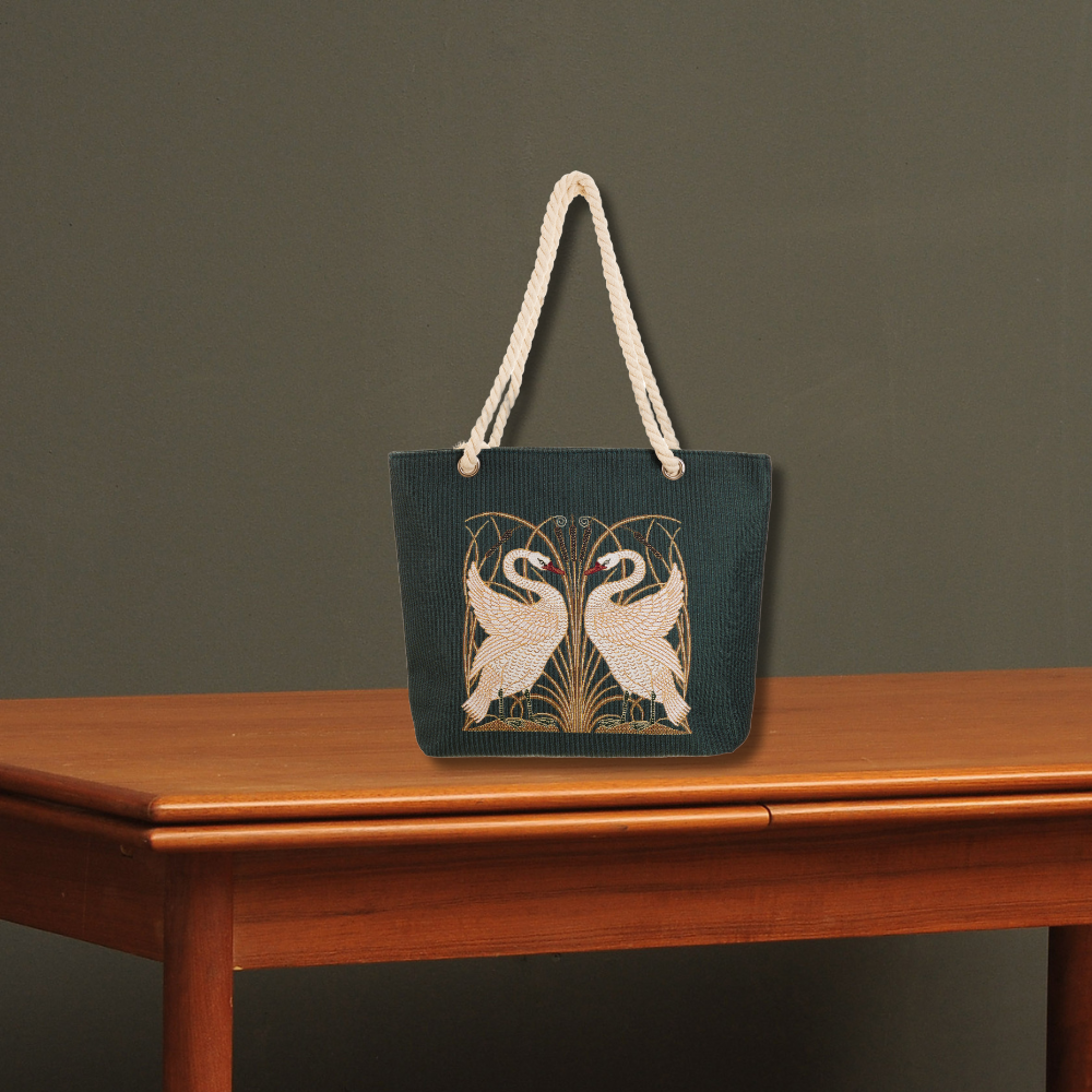 This beach bag featuring a beautiful walter crane swan design is the perfect accessory for Spring 2025. With a convenient zipper and sturdy rope handles, it will keep your belongings safe and secure while you enjoy the beach. Available in March.